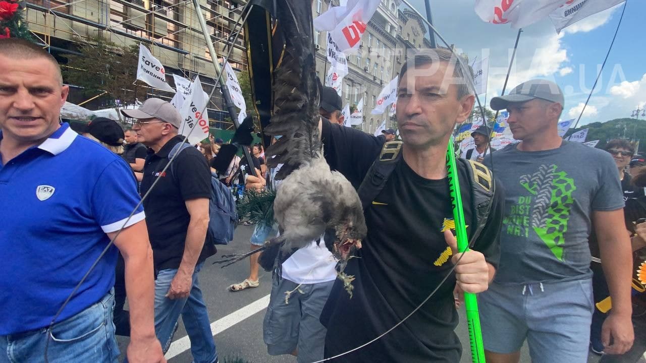 Митингующие собирались установить гроб возле Офиса президента Украины. В конечном итоге после "битвы" за гроб полиция разблокировала участников акции и те двинулись в сторону Верховной Рады.