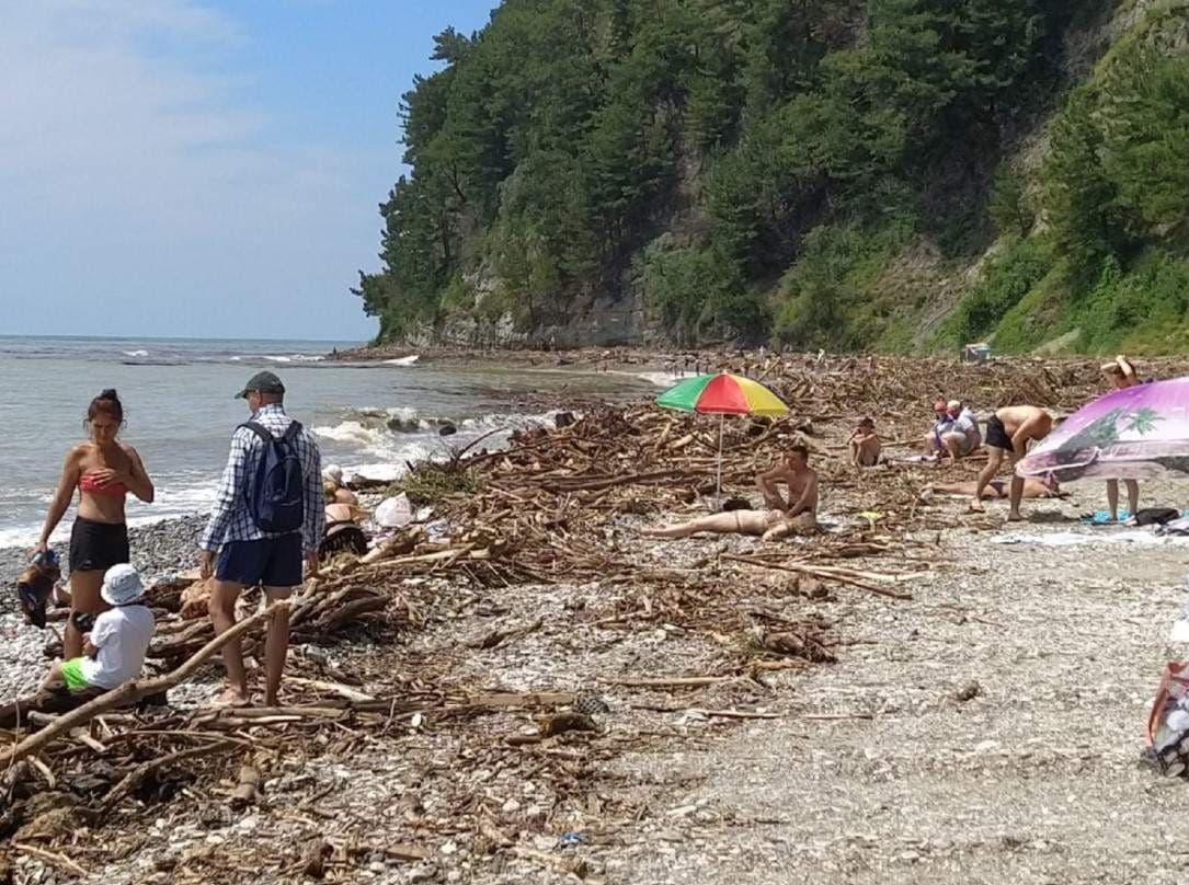 В Сочи россияне выходят на пляжи в окружении отходов, бревен и поломанных веток.