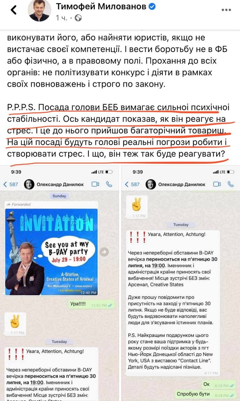 Как отмечает Данилюк, он не будет комментировать этот инцидент. Он назвал Милованова "человеком без совести и репутации, который не заслуживает внимания".