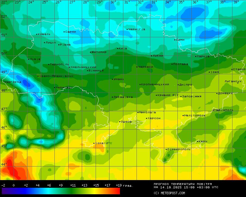 Среда, 14 октября, принесет в Украину прохладу и осеннюю влагу. По данным Укргидрометцентра, ночью температура опустится до +2…6°, а днем поднимется лишь до +6…10°. В центральных и восточных областях будет немного теплее — до +12°, на юге ожидаются самые комфортные показатели — до +16°.