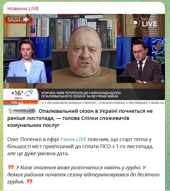 Премьер-министр Украины Юлия Свириденко ранее уточнила, что начало отопительного сезона зависит от погоды: решение принимают местные власти, если в течение трех суток среднесуточная температура не превышает +8 °C. Тем временем объекты социальной сферы - больницы, школы и детские сады - уже начали получать тепло. По данным Укрэнерго, в течение 10 дней отопление будет постепенно подано по всей стране, что поможет снизить нагрузку на электросеть.
