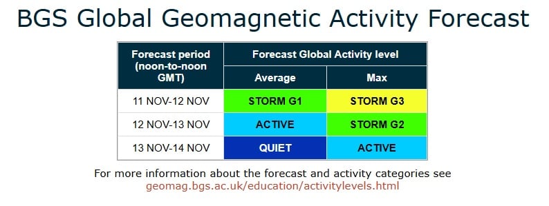 Данные Британской геологической службы свидетельствуют, что 11 ноября на нашу планету обрушится выброс корональной массы, который произошел еще 7 ноября. Одновременно мощные вспышки на Солнце класса X, произошедшие 9 и 10 ноября, усилят магнитную бурю на Земле.