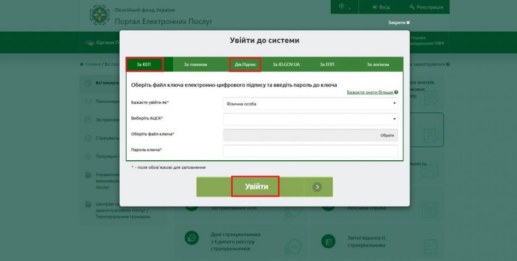 Дальнейшая процедура происходит онлайн. Необходимо зайти на веб-портал Пенсионного фонда Украины, воспользовавшись квалифицированной электронной подписью или сервисом "Дія.Підпис".