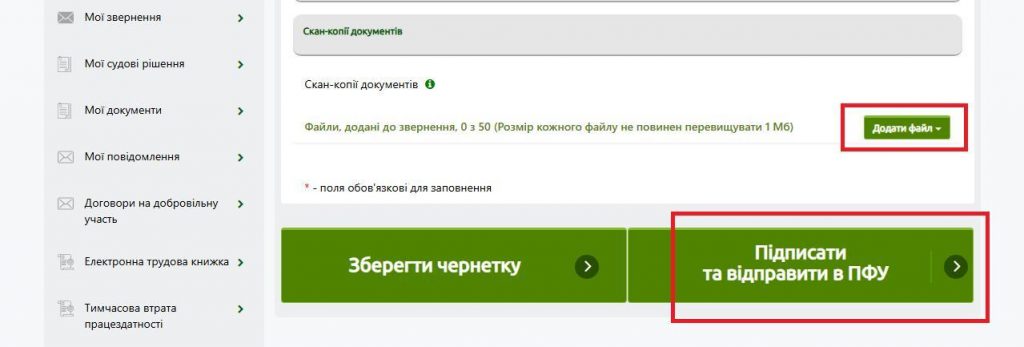 Завершается процесс нажатием кнопки "Підписати та відправити у ПФУ".