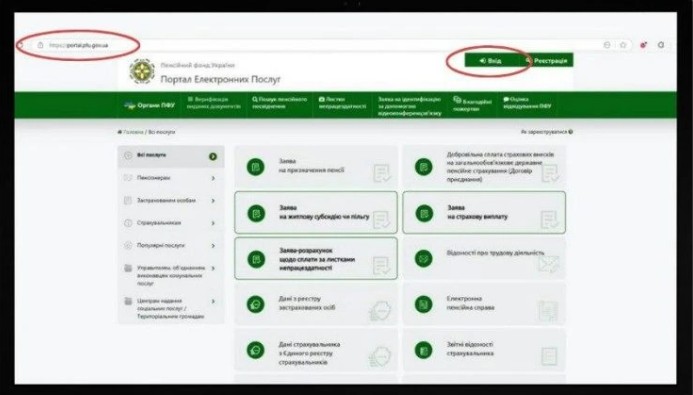 - зайти на сайт ПФУ;