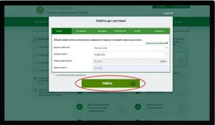 - авторизоваться (сделать это можно через электронную подпись, BankID или "Дія.Підпис") и нажать "Войти";