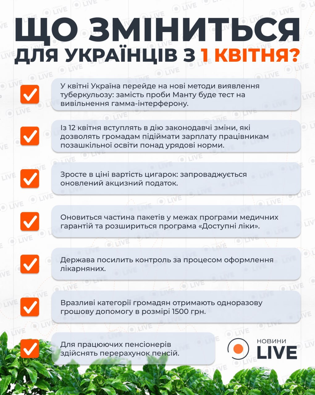 Уже с 1 апреля украинцев ждут несколько важных нововведений, среди которых повышение пенсий части пенсионеров, выплаты 1500 грн уязвимым категориям и подорожание сигарет.