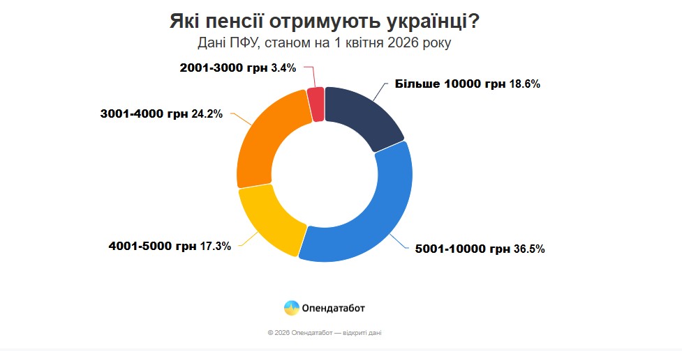 В целом в стране насчитывается 10,05 млн пенсионеров. За период с января по март 2026 года их стало меньше на 116 тыс., а с начала полномасштабной войны на 740 тыс. Примерно четверть пенсионеров продолжает работать, и их средняя пенсия выше, около 7,9 тыс. грн.